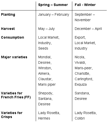 Potato Production in Israel by Seasons